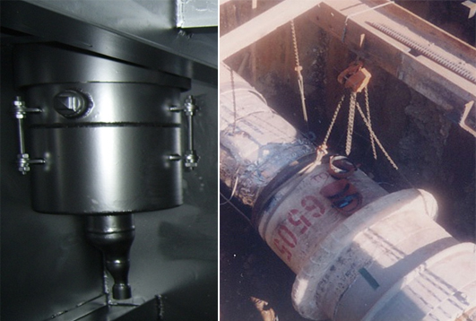 ■ MANHOLE ENTRY UNIT (AKV + MD) 외관과 맨홀 콘크리트 구조물 사이의 기밀상태를 유지하도록 하여 방수역할을 하며 외관의 열응력을 흡수하여 열응력에 의해 구조물의 벽체가 손상되지 않도록 한다. 내관과 외관의 기밀상태를 유지하는 역할을 하며 필요할 시, Socket이 부착되어 진공 처리작업, 기압의 Test, Vacuum Jumping, 응축수 Drain, 습기방출을 할 수 있도록 한다. |